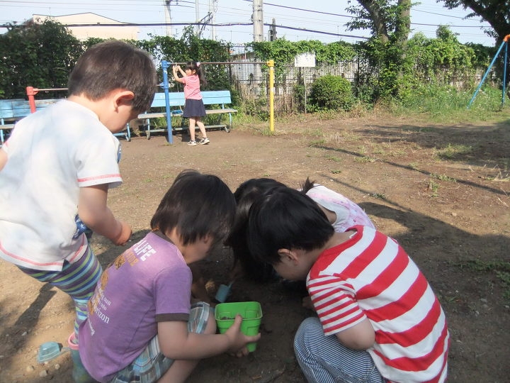 天気の良い日には近くの林を散策し、自然の植物や動物・虫たちと親しみます。