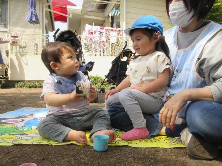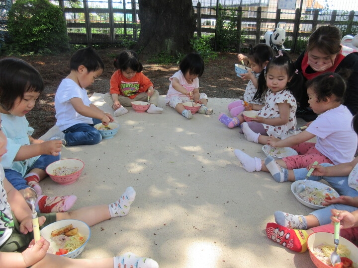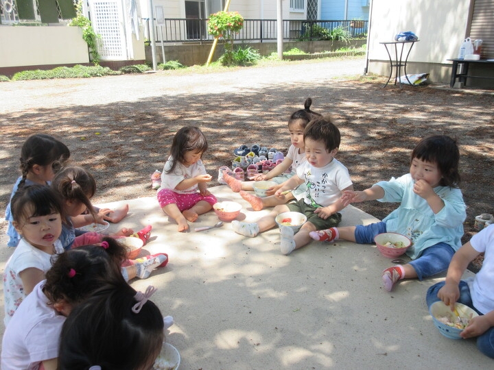 お外で食べると楽しいね♪