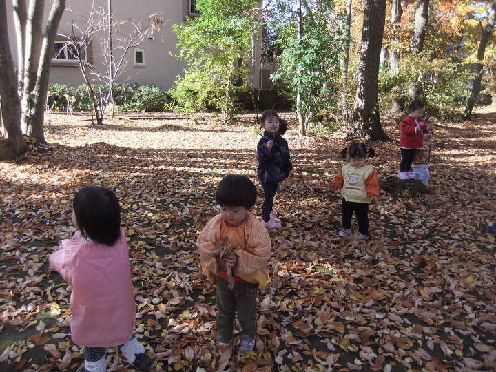 林の中で落ち葉遊び🍁