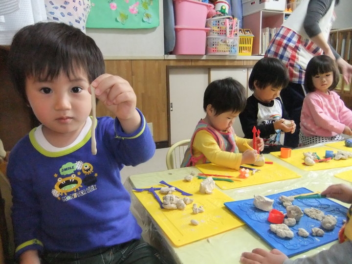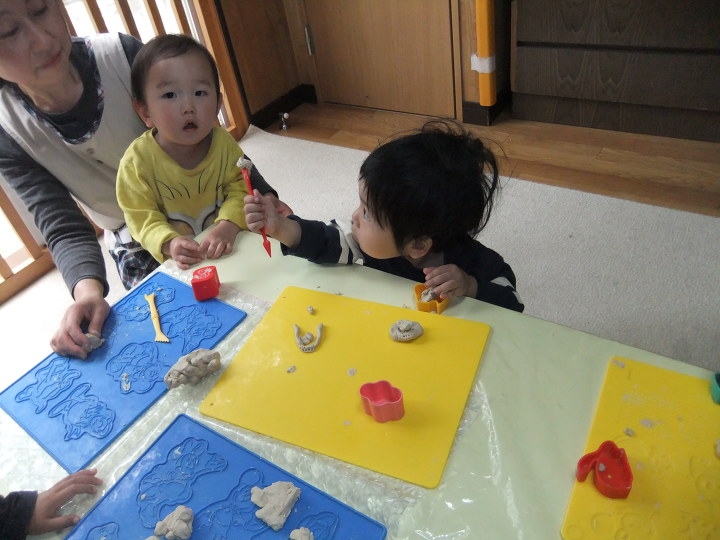 すみれルームで粘土遊び。