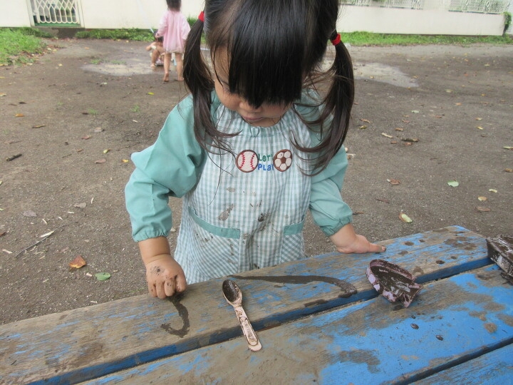 どろんこでお絵描きもできるね