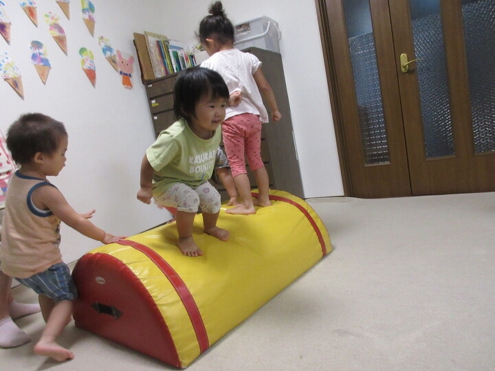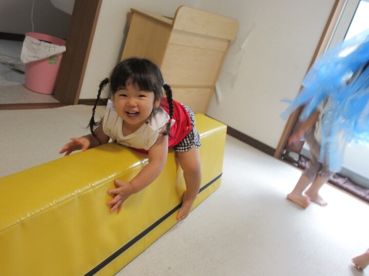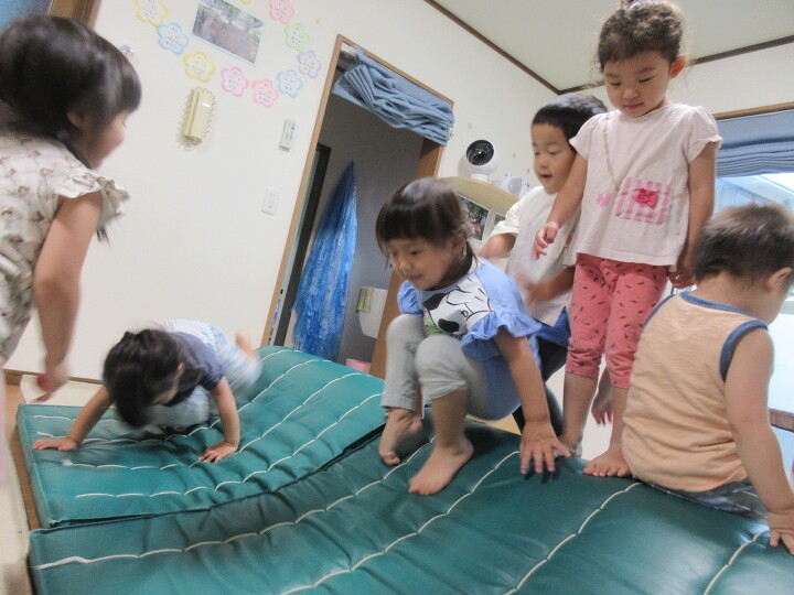 雨の日は大好きなマット遊びだよ